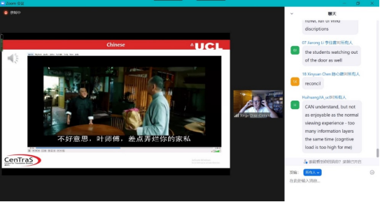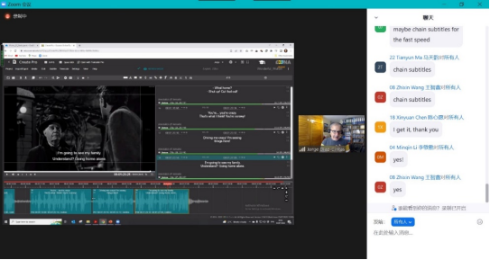 本课程课堂气氛活跃,师生互动频繁,学生参与度高。每天3个多小时的课时虽长,但过程并不显得枯燥乏味,反而充实有趣。云端授课也并未拉大师生间的距离感,时间往往就在教授耐心阐释、演示,以及同学们积极思考、实时反馈中倏然而过。借助Ooona平台,同学们得以进行字幕翻译制作实践,Díaz-Cintas教授和贾辉煌助教耐心地讲解同学们的字幕翻译练习,对同学们的优点予以肯定与表扬,并指正同学们在字幕制作过程中出现的技术及语言问题,更是有问必答,师生沟通较为高效,课程进展顺利。