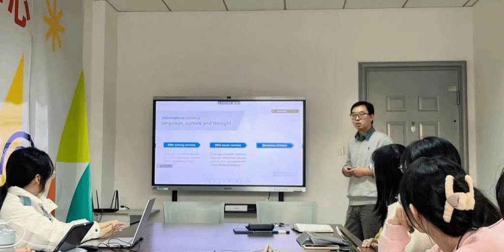据悉,辩论赛前,语言学基层教学组织的聂鹏老师和耿云冬老师分别对八位同学进行了辩论技巧和辩论内容指导。聂鹏老师介绍了”英国议会制辩论“,详细讲解了辩手职责、评判标准、反驳技巧等知识。耿云冬老师则结合萨丕尔-沃尔夫假说以及史蒂芬·平克的”心语“(Mentalese)等语言学经典假设和具体案例,讲解了语言学家们对语言与思维之间关系的“论争”,引导各位同学深入探究语言与思维之间的关系。