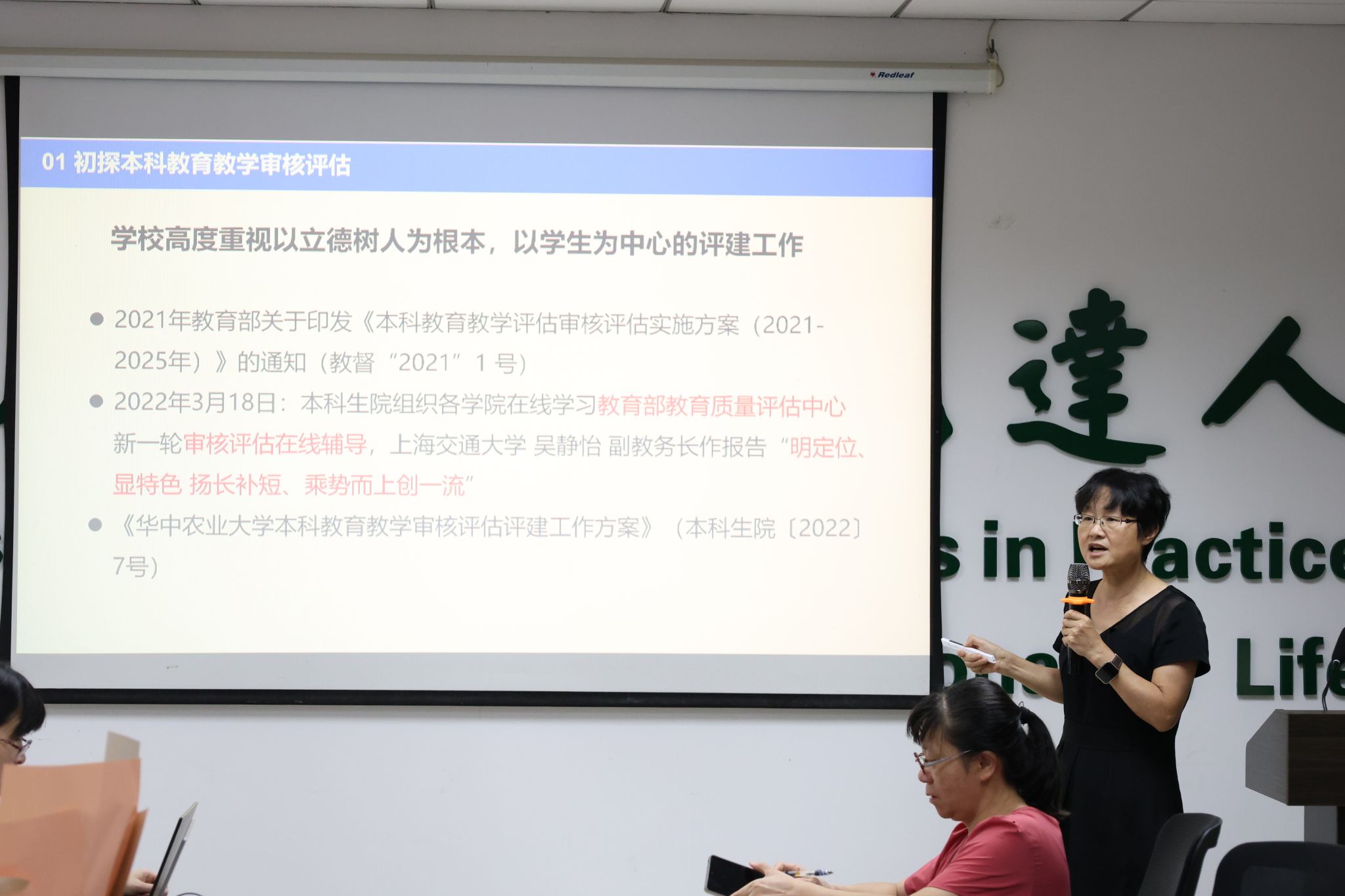 副院长秦发兰作了题为“凝心聚力,融创致新,高质量做好本科教育教学审核评估迎评创建工作”的专题报告,重点汇报了前期迎评工作情况、专家组考察流程以及下一阶段重点任务。她强调,要持续完善教学档案材料与支撑材料,做到精准对标、真实详备;全体教师应深入把握新版人才培养方案的内涵与改革导向,严格落实教学管理规范,熟练掌握评建应知应会内容,共同营造“人人关心、人人参与、人人尽责、人人有为”的迎评氛围,扎实推动本科教育质量提升。