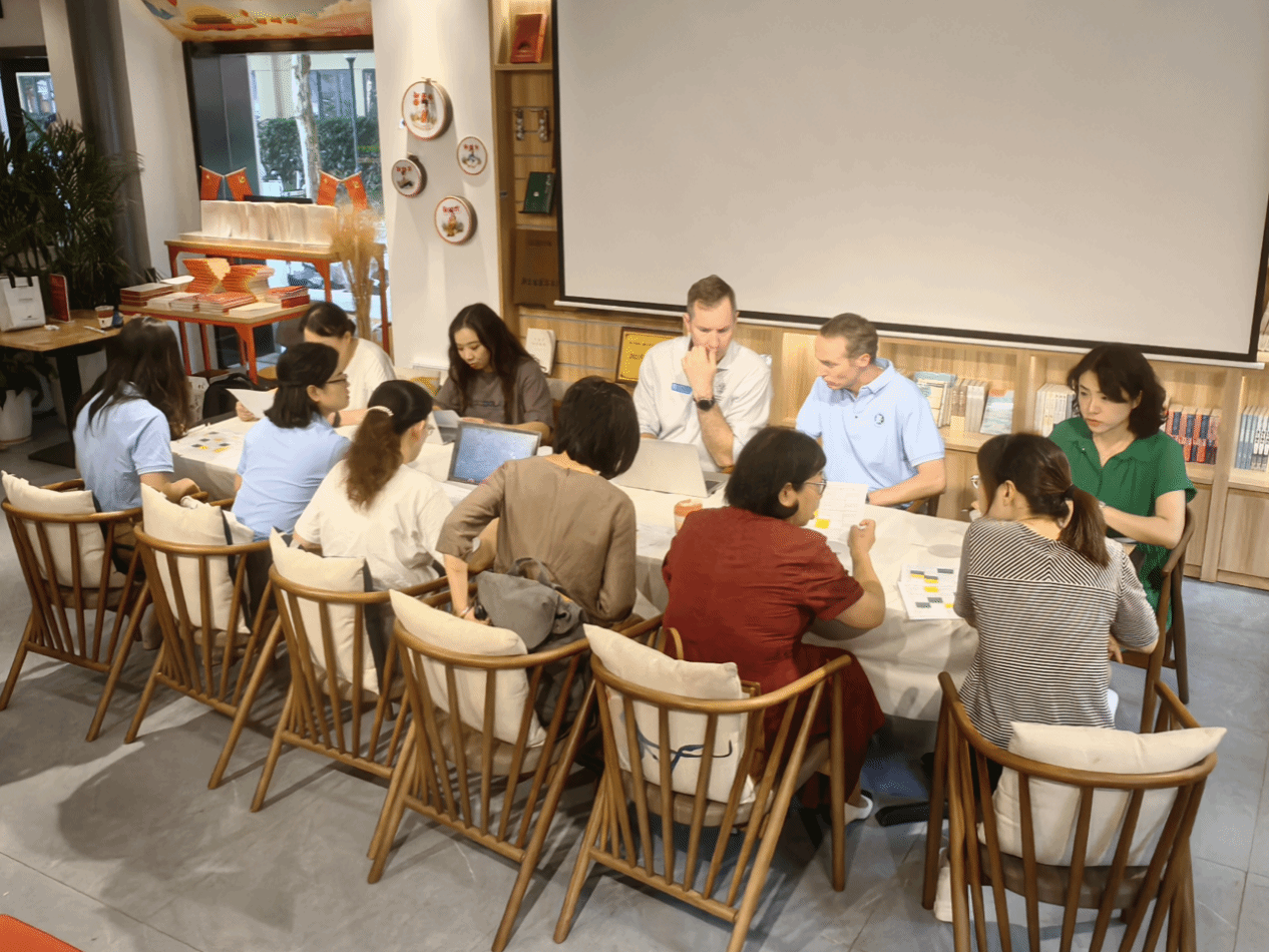 学习支持的背后,是一支不断追求卓越的教师团队。公共外语教学部教师积极寻求变革,与华农林肯学院学术英语教学团队成立了联合教学工作坊。自2024年8月以来,双方通过线上线下结合的形式,在倍阅书店、林肯学院会议室等地举行了一系列教研活动,通过共享教学资源与经验,有效促进了教学内容、方法与国际标准的对接。这一举措不仅推动了公共外语教育的创新与改革,也为打造一支具有全球视野的师资团队奠定了坚实基础。
