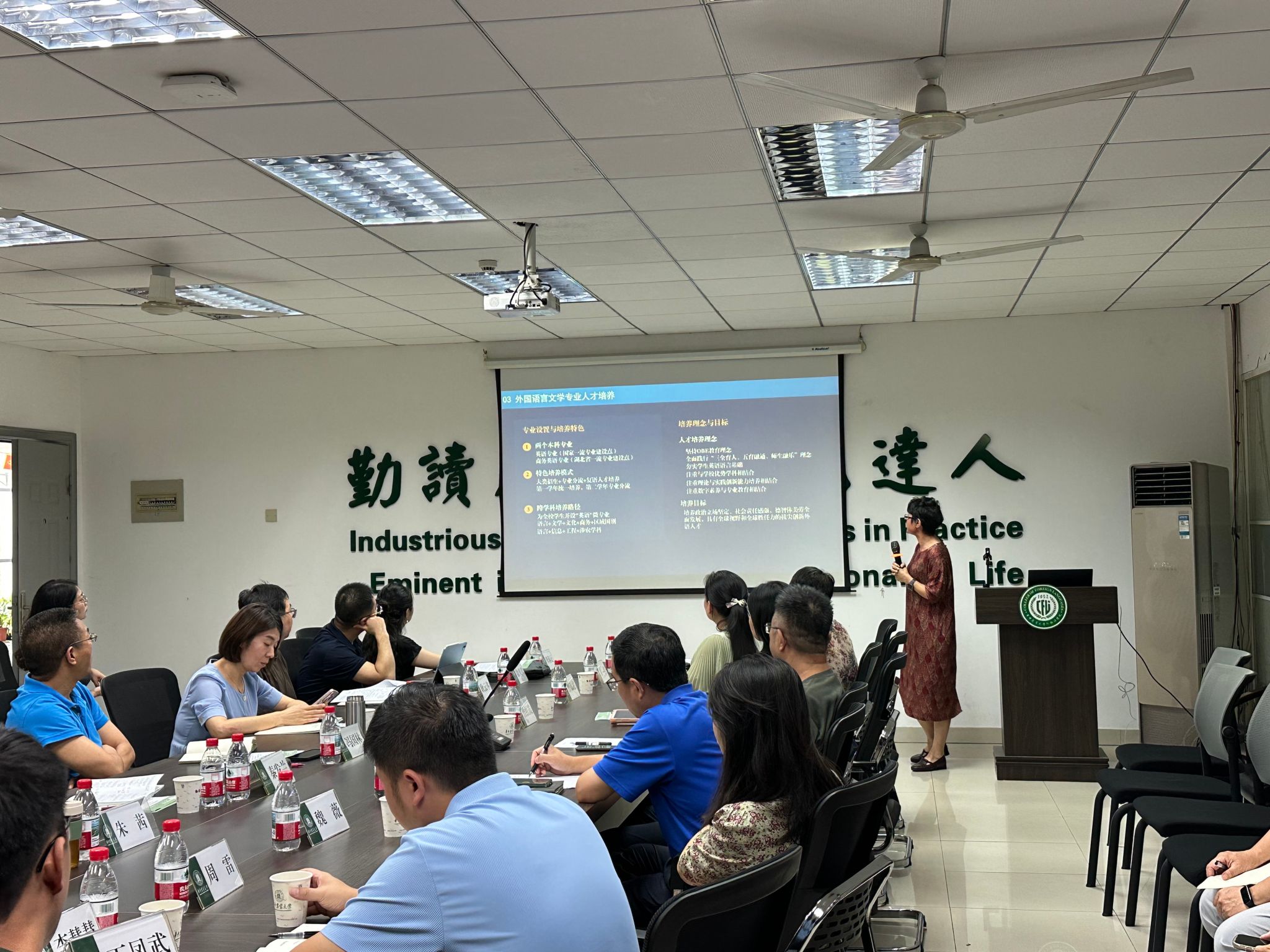 材料检查组组长魏薇就8月23日第一阶段材料检查情况作了反馈。她充分肯定学院“十项重点任务”整体推进有序,同时指出教学过程材料和记录需进一步完善,应知应会内容需进一步充实。各职能部门负责人在交流中建议,优化PPT汇报结构,突出学院特色与亮点,彰显公共外语教学对全校的服务成效;精简文字、增加图片与数据支撑,突出重点内容;清晰呈现学院在拔尖创新人才培养方面的具体举措。