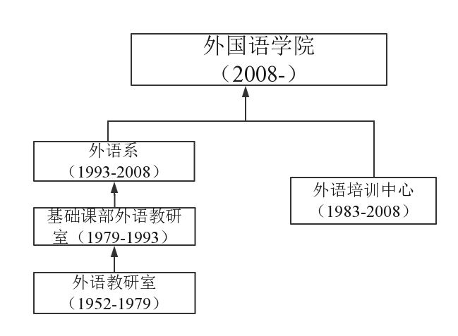 为适应新时期国家和社会对外语专业人才的需要和提高外语人才培养水平,1993年7月由原基础课部公共外语教研室和外语培训中心合并成立外语系。2008年2月成立pg娱乐电子游戏官网入口,设有英语系、商务英语系、公共外语教学部(大学英语教学部与研究生英语教学部合并),MTI教育中心,外语实验教学中心等教学机构。大学英语教学部、英语专业教研室被评为省级优秀教研室。成立了11个基层教学组织,积极开展专业建设、课程建设、教学改革、教学竞赛等活动,不断提升教学质量,提高学生获得感与满意度。